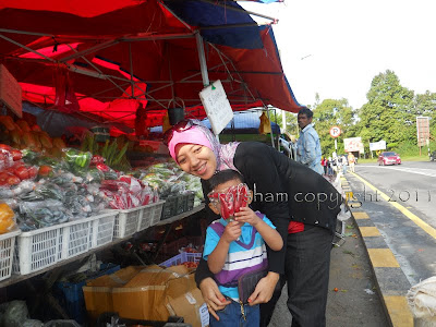 Kami keluar awal. 7:30 pagi dah check out. Then naik atas, ke pasar basah brinchang. Bila tengok sayur-sayuran yang segar bugar memang tak boleh tahan wok. Gatal tangan juga beli walaupun menyedari diri ini tidak memasak serajin dulu kala..haha...ternyata kerugian yang nyata bila balik rumah sebab banyak yang layu dalam peti ais dari layu atas api dapur.